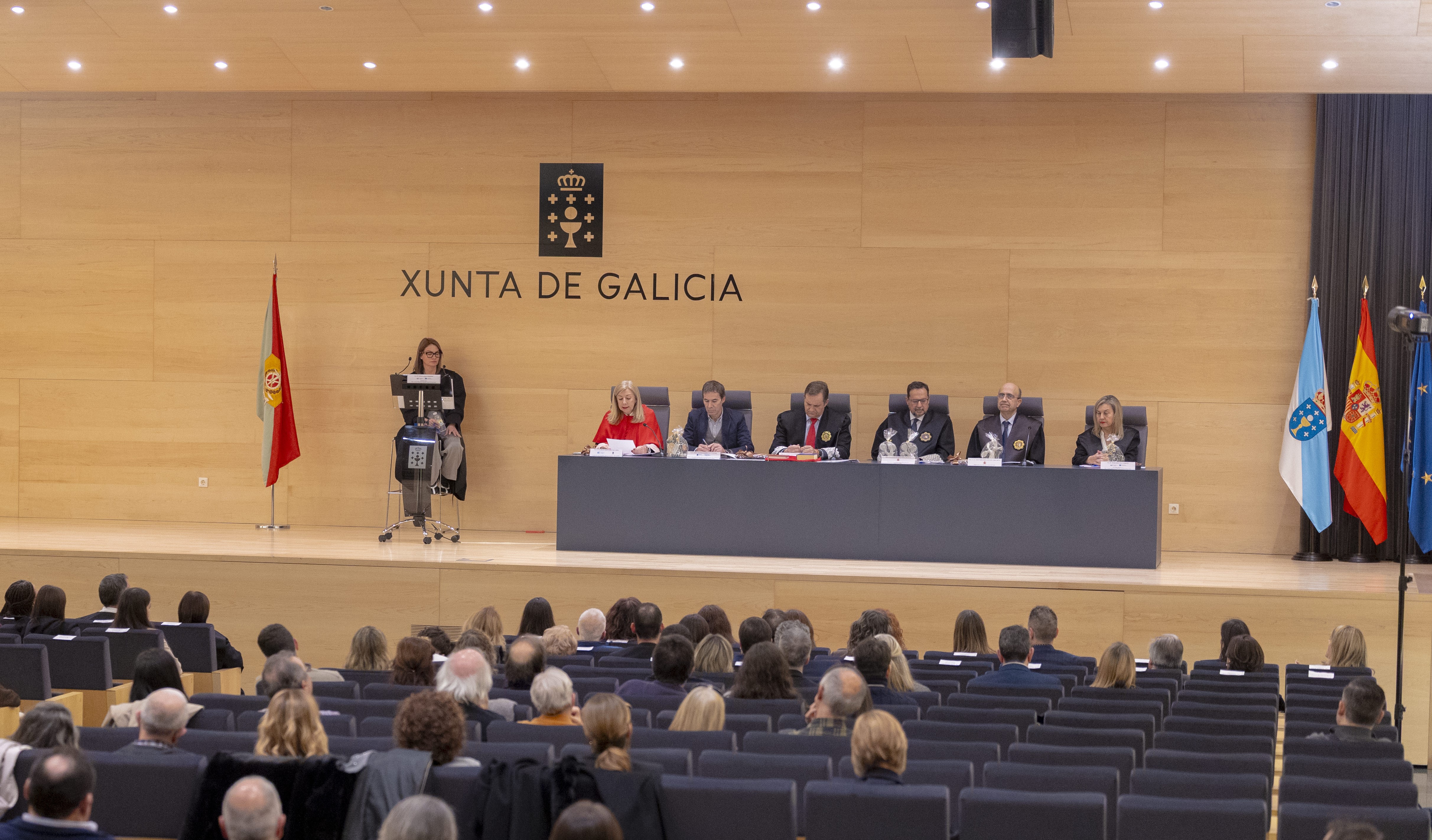La secretaria, saluda y da la bienvenida a las personas que componen la mesa presidencial, saluda a las autoridades, personas distinguidas, invitados e invitadas así como al colectivo presente en el Edificio Administrativo de la Xunta de Galicia.